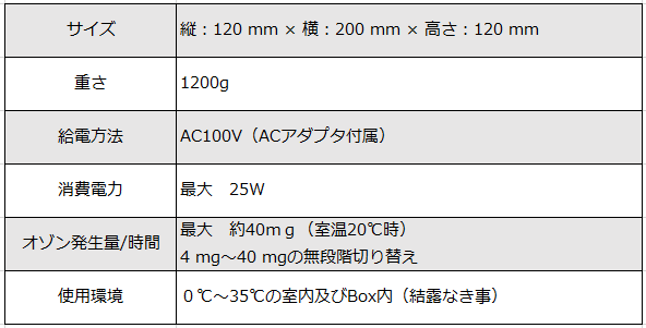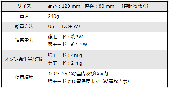 - 家庭用で最高レベルのオゾン発生量:4mg/時間(強モード時)