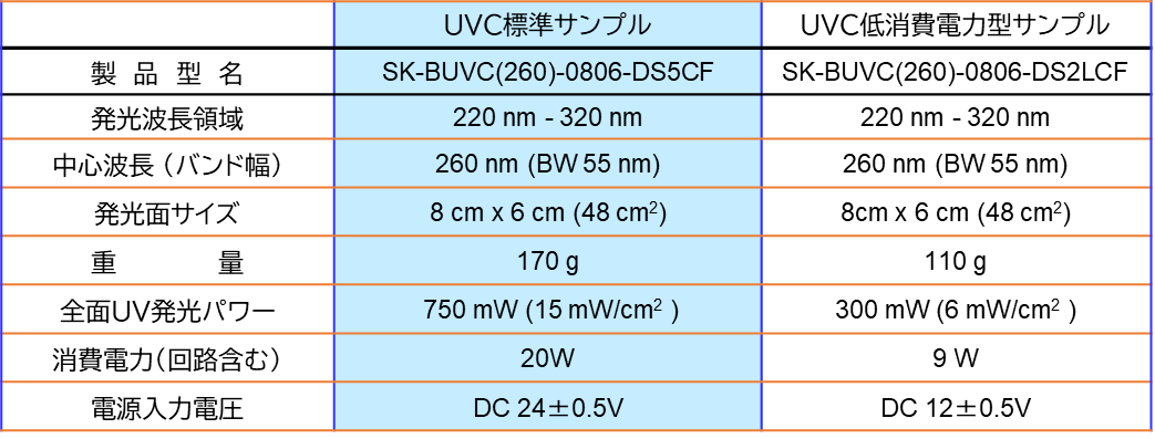 • UVC低消費電力型サンプルは、UV発光パワーが従来の標準品と同等で価格は5万円
